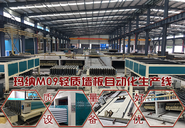 M09輕質墻板自動化生產線是鄭州瑪納M系列成組立模類生產線之一,主要生產輕質類隔墻板。自問世以來收獲了很多鐵桿用戶,他們用此裝備生產的隔墻板優質整平,銷往全國各地,有的不到1年就回本贏利了。