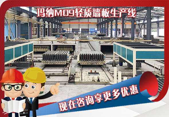 目前全自動輕質墻板生產線還未被廣泛應用,很多輕質墻板廠家采用的生產裝置生產效率低,勞動強度大,合格率低,不能保證產品的質量。為此瑪納公司研制開發了全自動多功能墻板生產線—M09輕質墻板生產線,該輕質墻板生產線具有成型精度高、周轉效率快、自動化程度高等優勢,主要設備包括:上成型機、擺渡車、凈面機(非布網/筋選用)、自動布料機、抽/穿芯一體機、出板接板機構、功能主機部分,可根據客戶不同需求在生產線原有基礎上修改定制,可滿足各種輕質墻板生產需求。