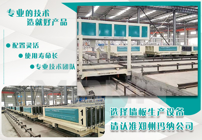 瑪納公司(北京市建筑工程研究院鄭州建筑模板總廠改制單位)裝配式墻板生產設備整體技術采用公司自主創新研制開發的新型成組立模技術裝備,采用立模法機組流水工藝生產,該線使用瑪納多項技術做支撐,擁有完全的自主知識產權,主要滿足用戶大規劃、高品質、高度機械自動化的產品需要,公司建有完善的“工業化房屋制造系統”裝備研發及產業化基地,擁有兩個占地100畝的裝備制造基地,具備年制造板材裝備1000套、模板制造2000噸的生產能力。