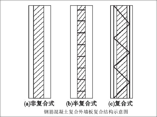 鋼筋混凝土復(fù)合外墻板主要是由外部的鋼筋混凝土結(jié)構(gòu)承重層和內(nèi)部的夾芯保溫層組合而成的墻板結(jié)構(gòu),典型的構(gòu)造有如下圖三種復(fù)合形式。鋼筋混凝土復(fù)合外墻板根據(jù)夾芯保溫層所用材料的不同,有承重混凝土巖棉復(fù)合外墻板、混凝土膨脹珍珠巖復(fù)合外墻板和三種類型的復(fù)合外墻板。