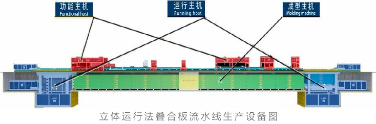 主要設備由功能、運行和成型三大主機構成。功能主機:清模機、涂油機、邊模歸位機、端模歸位機、布料機、振動機和側翻機。運行主機:推移機、歸位機和轉運機。成型主機主要由模臺構成。