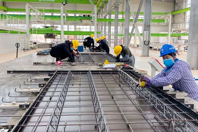 疊合板作為裝配式住宅中水平構件的一種,較傳統現澆樓板在質量和施工速度、環保等方面均有較大的優勢,主要表現在工廠生產不僅對質量把控更勝一籌,而且可減少現場大量的模具支護和鋼筋綁扎工序,從而有效降低了現場施工對周邊環境的影響且能大幅提高施工速度。