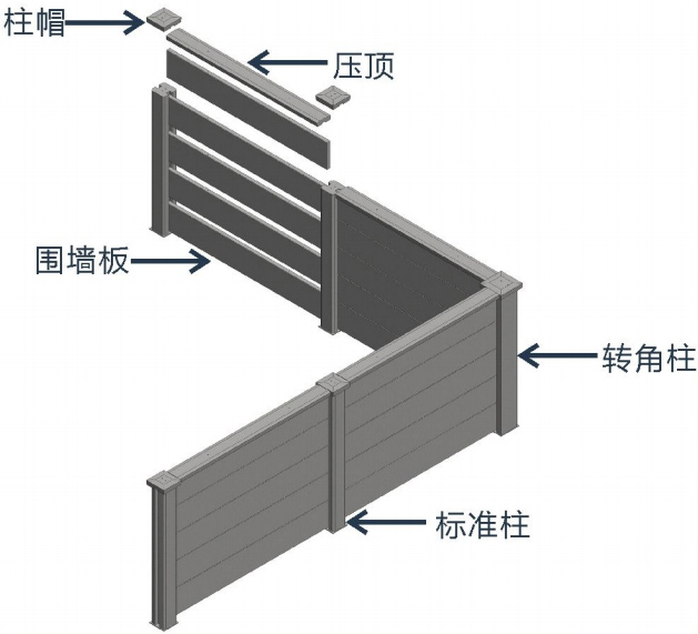 裝配式圍墻一般由柱、墻板、壓頂和柱帽構(gòu)件組成,所有構(gòu)件采用工廠預(yù)制。