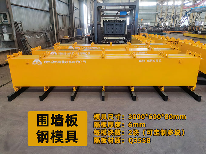 圍墻模具材質(zhì)選用Q235,厚度不低于6mm,以確保模具使用的剛度、承載力及穩(wěn)定性。模具支撐結(jié)構(gòu)采用筋板加固,側(cè)模板與底模板連接采用螺栓方式連接,連接面提前采用泡沫膠帶密封好,以防振搗時(shí)漏漿。必要時(shí),模具連接點(diǎn)處需設(shè)置定位銷,定位銷間距約1m,以保證施工時(shí)不跑模、偏模。模具內(nèi)表面平整度允許偏差需不大于1mm,模具各方尺寸允許偏差不大于2mm。