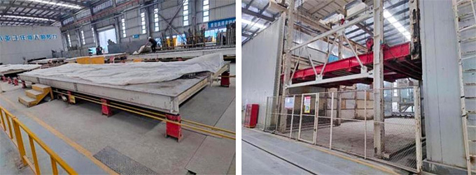 拉毛完成后,對混凝土面進行覆膜,進入蒸汽養護窯養護。