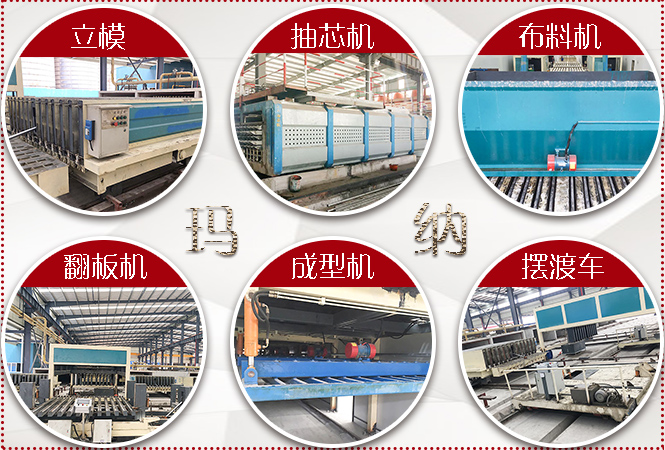 要選擇什么樣的工藝,那就要看生產GRC輕質隔墻板用什么設備好,m09輕質墻板生產線是在瑪納研制的機動成組立模墻板成型工藝的基礎上,經過技術升級創新,研制出的新型輕質墻板生產線成型工藝,該生產線主要設備組成如下:
