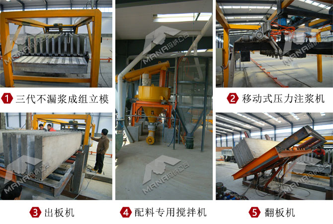 M08 復合夾芯保溫墻板生產線設備主要由五個部分組成:三代不漏漿成組立模、面板植入定位機、移動式壓力注漿機、配料專用攪拌機、出板機。配套輔助設備根據客戶需求選配。設備外形尺寸:長2440mm-3000mm,寬600mm-610mm,高75mm-150mm。異型尺寸也可以根據客戶需求或客戶當地地方標準進行訂做。