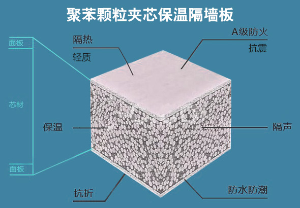 聚苯顆粒夾芯保溫隔墻板,它是一種新型節能輕質建筑隔墻板。表面有兩層硅酸鈣板做為面板,中間填充EPS聚苯乙烯顆粒和水泥復合形成的實心隔墻板,可用做內墻,也可以用做外墻,重量略重于GRC,但性能卻比GRC強很多。可釘、可鋸、可掛,可開槽布線,這些都是傳統的“秦磚漢瓦”所不能比擬的。廣泛適用于住宅樓、框架樓、辦公樓、商鋪裝修改造、賓館酒店等建筑非承重墻。