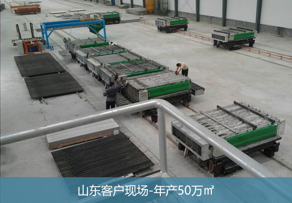 3.產能高用工少,標準生產線產能年產50萬㎡(3000mmX600mm),單組直接操作工人約需8-10人,工作時間8-12小時(參考)。