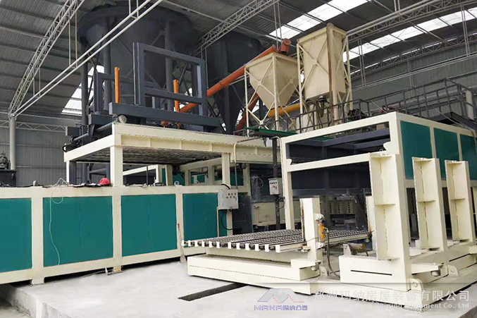 瑪納公司作為“預制部品工業化制造”的先行者,是一家致力于新型板材裝備研發、制造并提供固體廢棄物綜合利用一體化解決方案的墻板裝備龍頭企業、國家高新技術企業。為克服上述技術問題,瑪納公司提供了結構設計合理,使用壽命長,生產效率高,易于脫模,加工的輕質墻板表面質量穩定的新型墻板機,目的是提供一種生產效率高,注料方便,成品質量高的新型墻板機,具有以下優勢: