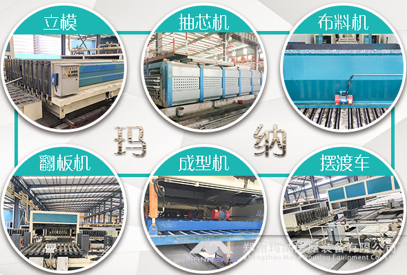 針對輕質隔墻板加工生產過程中出現的勞動強度大,生產成本高,沒有實現自動化生產及存在安全隱患等問題,瑪納公司提供一種新型輕質隔墻板生產設備——瑪納M09型墻板生產線,能夠實現自動化生產,節約了大量人力物力,M09生產線具有自動化程度高,生產效率高,操作性和實用性強等特點,瑪納M09型墻板生產線生產過程采用成組立模成型工藝,降低生產線過程中對能源的消耗,沒有粉塵和噪音污染,完全吻合國家節能減排政策要求。